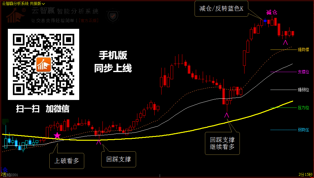 【云智贏】分析系統(tǒng),是一款以分析為主,策略為輔的系統(tǒng)分析軟件,全方位適用于所有市場行情,能夠提示支撐和壓力區(qū)間位置、高低位預(yù)警輔助信號,分析策略建議等,幫您規(guī)避很多震蕩行情,提高對行情的把控力,有效提高您盯盤的效率。讓行情分析不再難做!